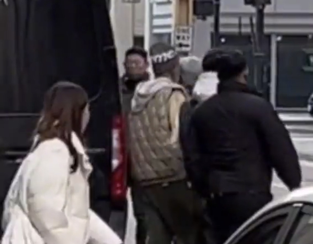 멤버들과 경호원이 호텔에서 나와 차에 오르자