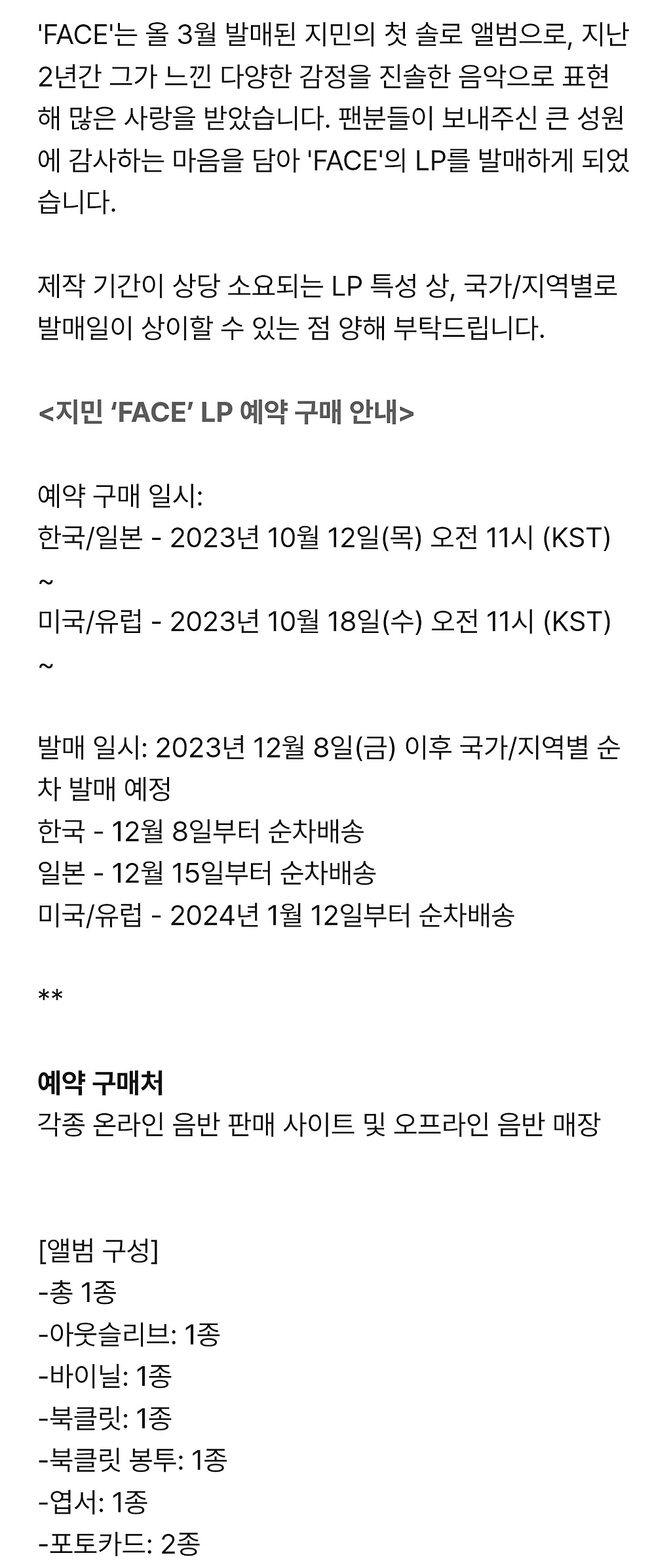 방탄소년단 지민 ‘FACE’ LP 발매 앨범 구성첫만남은계획대로되지않지예 추천수0비추천등록된 샷 리스트지민FACE앨범댓글 0댓글 정렬방식 선택추천순선택됨작성순댓글 쓰기프로필만 있으면 누구나 댓글 작성이 가능합니다.Loading...Loading...Loading...Loading...Loading...