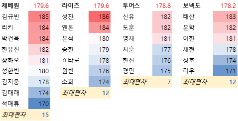 5세대 대형 남돌 평균 키 비교