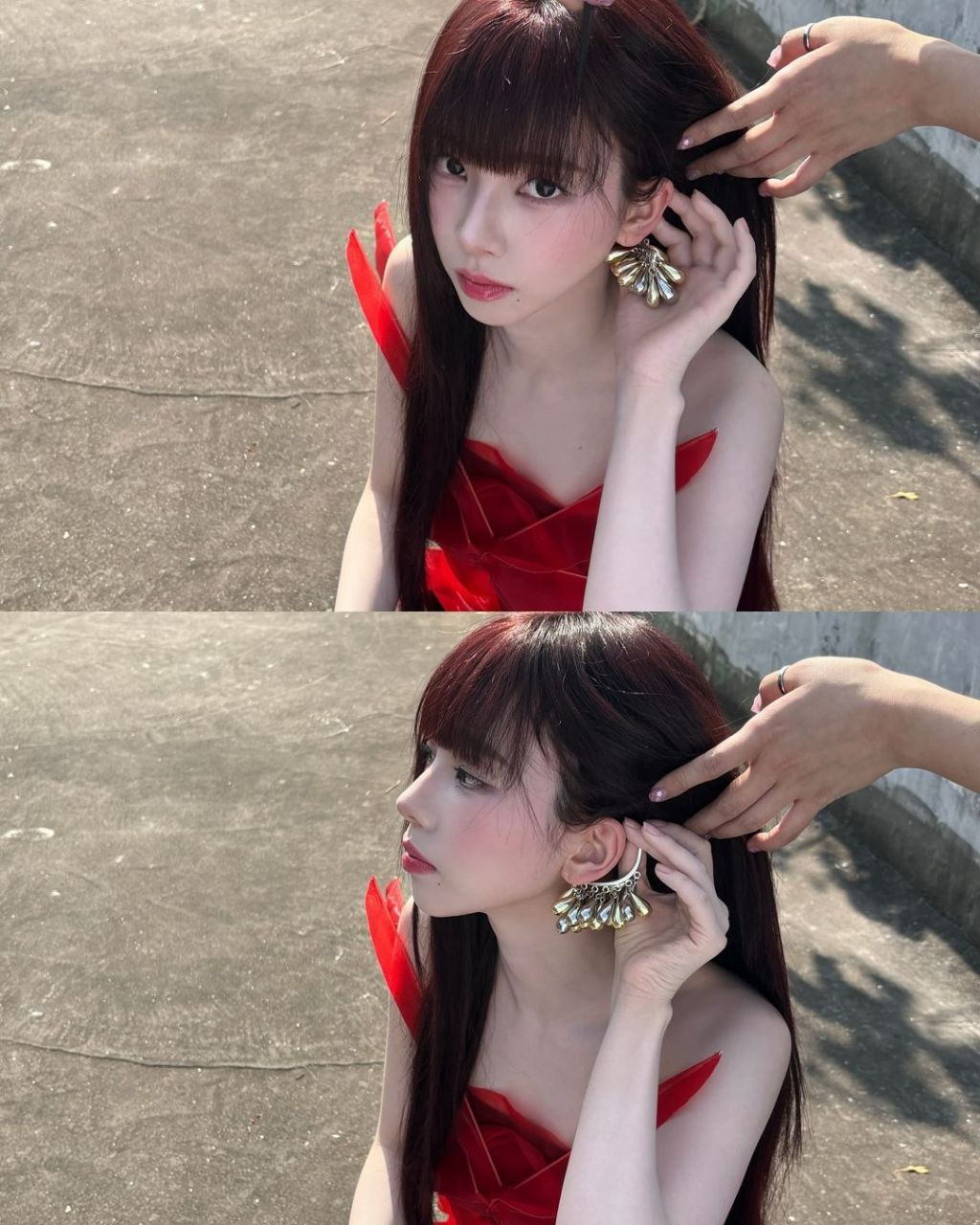 카리나는 AI를 뛰어넘는 비주얼로 비현실적인 아름다움을 선보이고 있다. 카리나라서 소화 가능한 귀걸이가 놀라움을 안긴다.