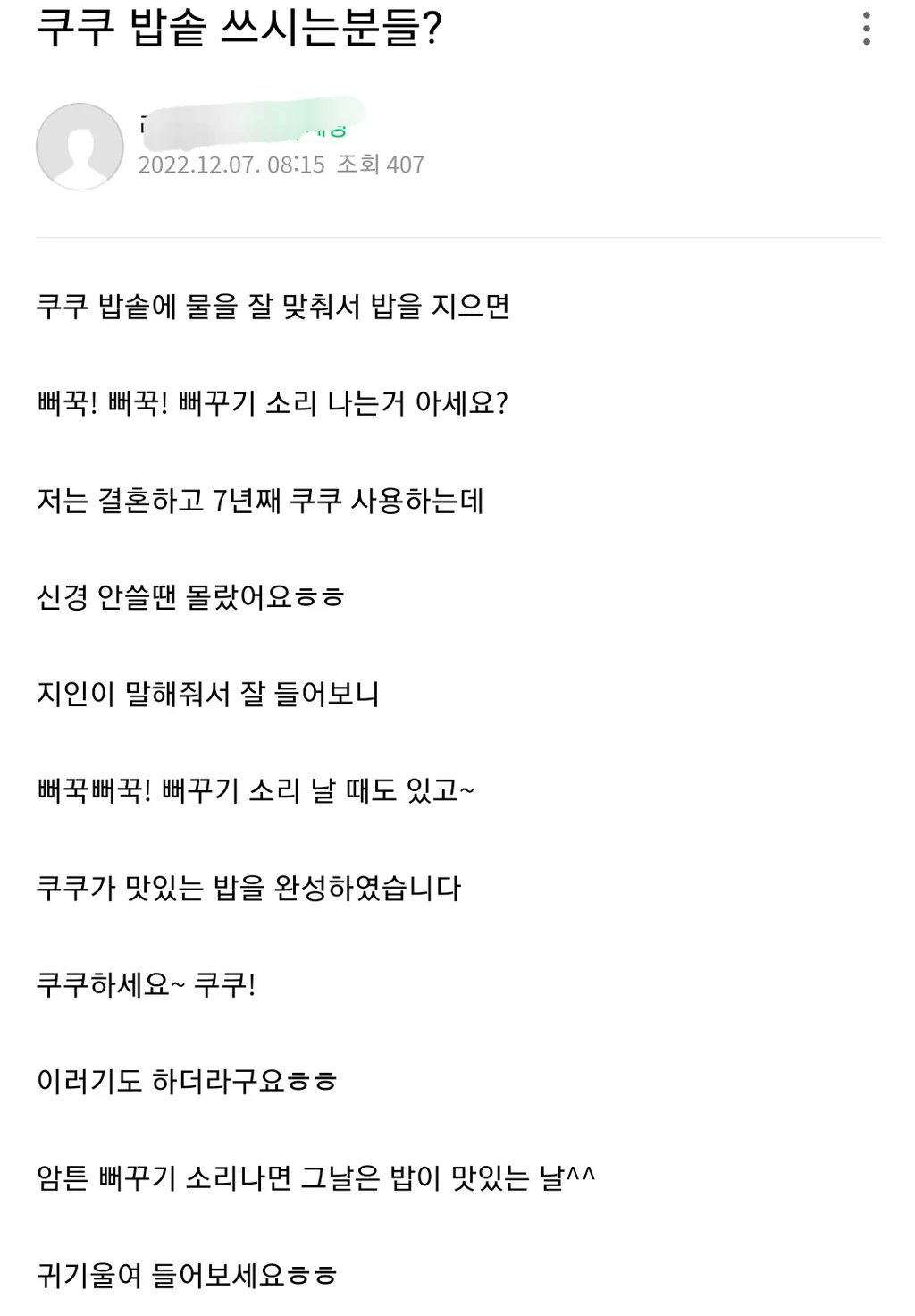 쿠쿠 밥솥 쓰는 사람도 잘 모르는 이스터에그소인배추천수0비추천등록된 샷 리스트이스터_에그밥솥쿠쿠뻐꾸기소리댓글 2댓글 정렬방식 선택추천순선택됨작성순Loading...Loading...댓글 쓰기프로필만 있으면 누구나 댓글 작성이 가능합니다.Loading...Loading...Loading...Loading...Loading...