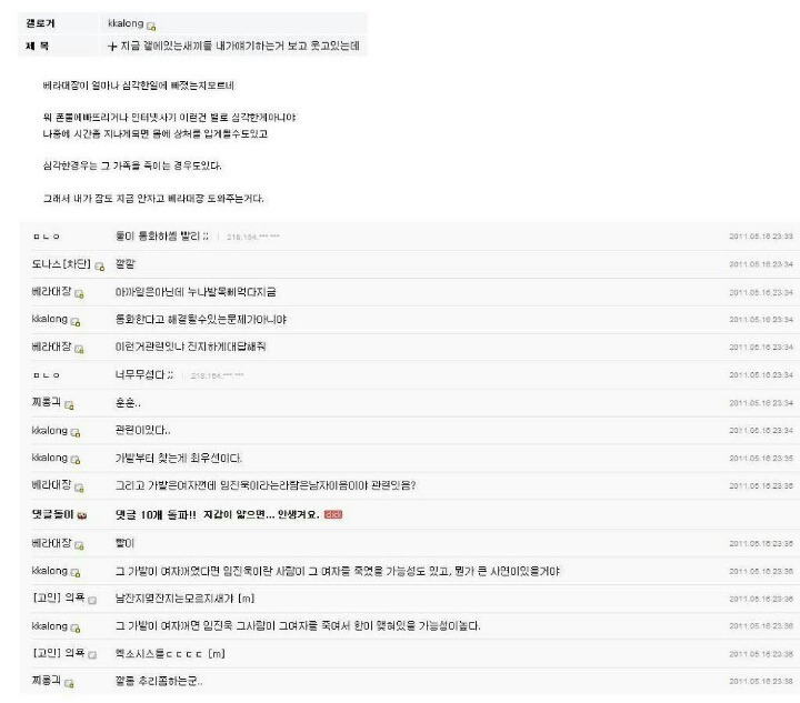 자기에게도 영향 올 수 있어서 연락처는 ㄴㄴ라는 깔롱