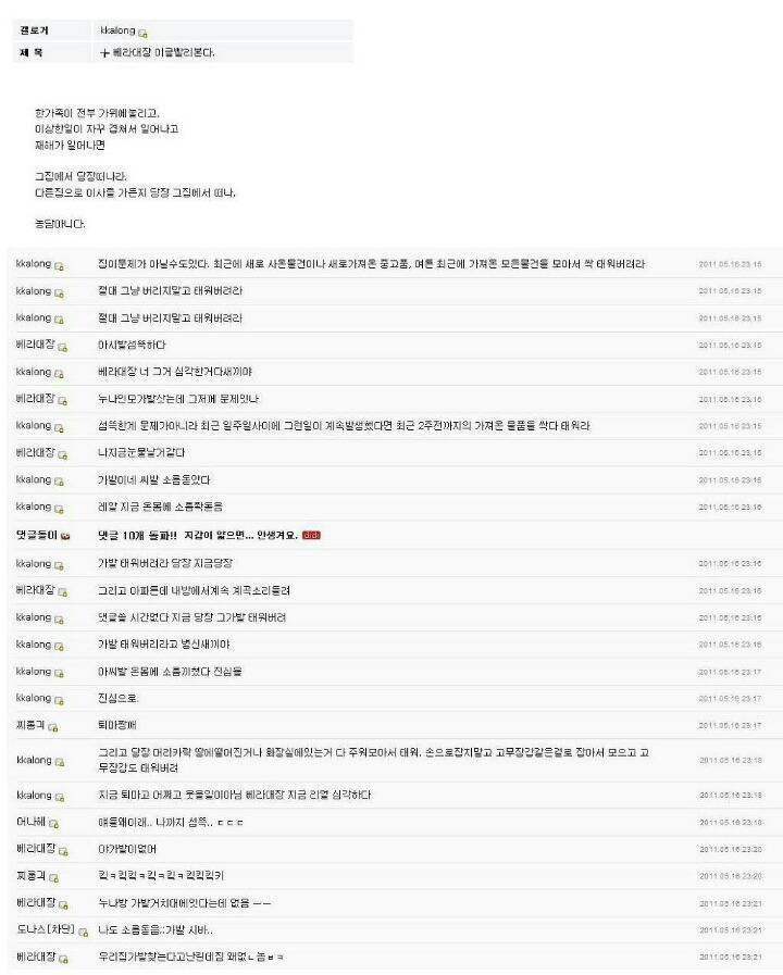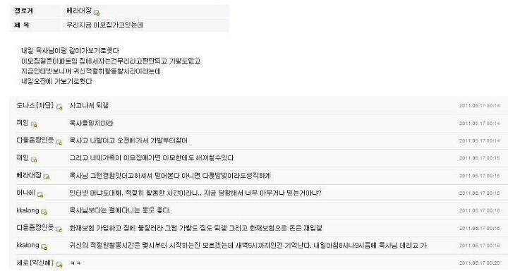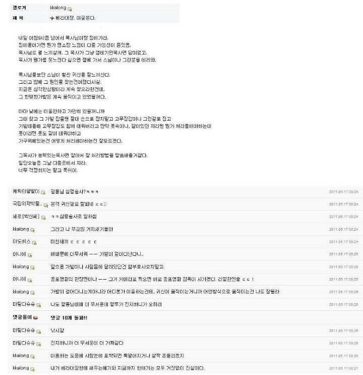 베라대장이 가위를 눌렸다는 글을 올린 것이 시작