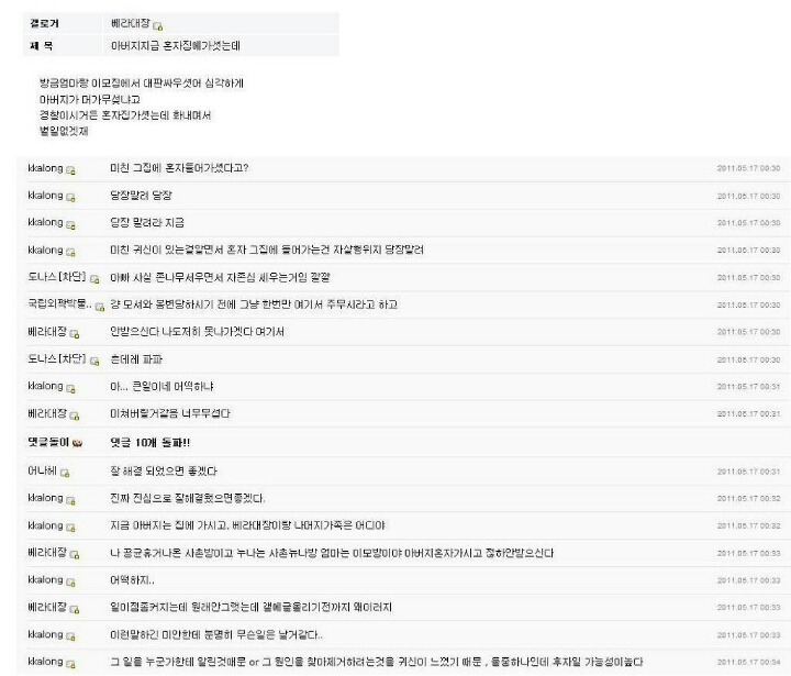 ? 근데 아빠가 자정쯤에 갑자기 엄마랑 싸우다 집 감