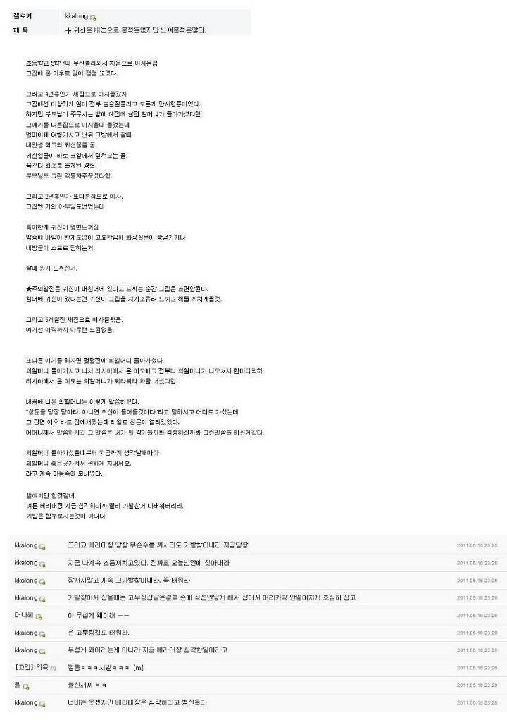깔롱은 귀신이 화났나보다라고 함..니가 갤질하는것도 다 알았을거라고