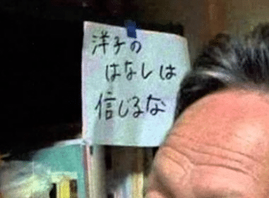 "洋子の話は信じるな(요코의 말은 믿지 마라)"