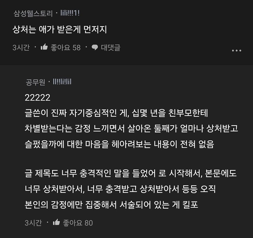 둘째 아이한테 너무 충격적인 말 들었어.blind태닝 키티추천수7비추천등록된 샷 리스트BLIND충격아이댓글 2댓글 정렬방식 선택추천순선택됨작성순Loading...Loading...댓글 쓰기프로필만 있으면 누구나 댓글 작성이 가능합니다.Loading...Loading...Loading...Loading...Loading...