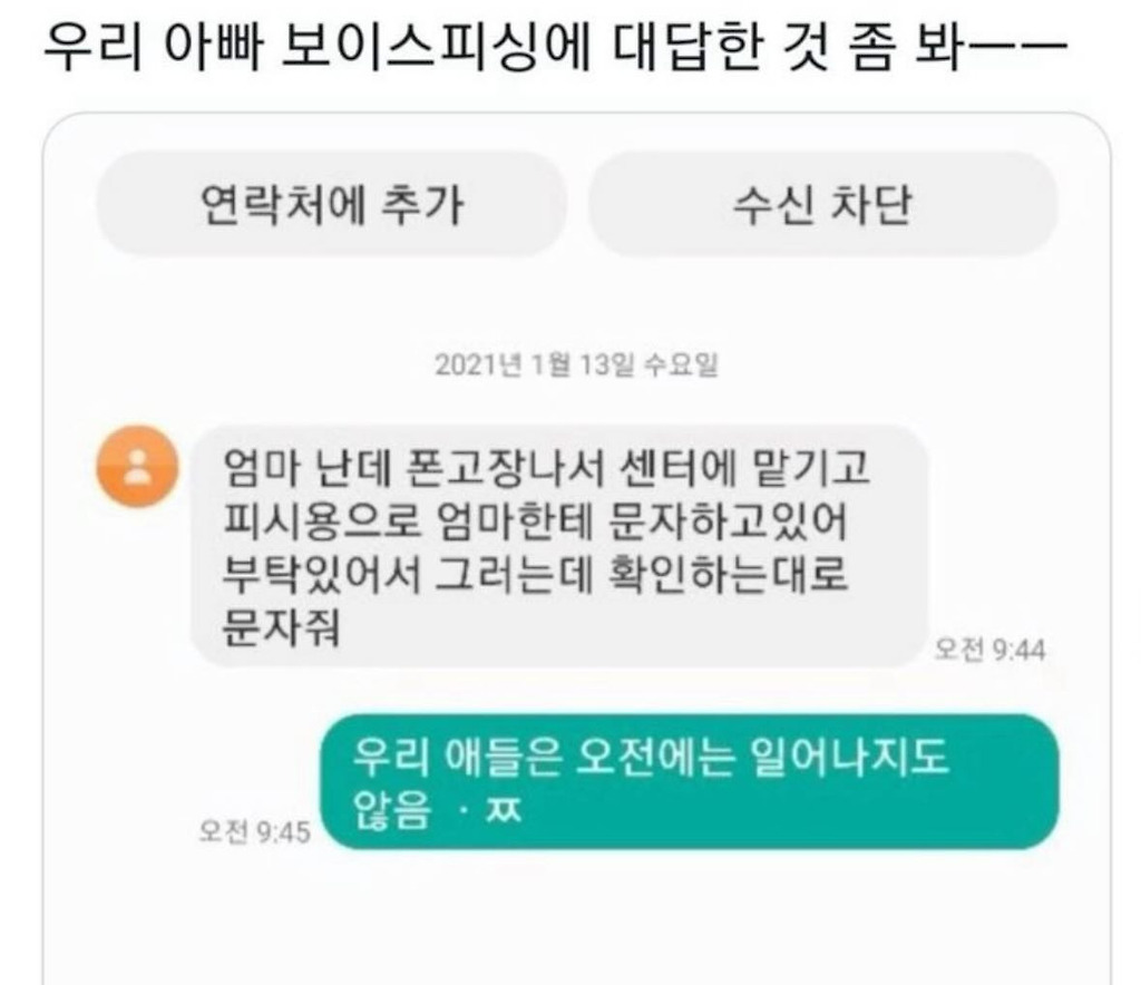보이스피싱에 대답하는 우리 아빠할미핼미추천수9비추천댓글 1댓글 정렬방식 선택추천순선택됨작성순Loading...댓글 쓰기프로필만 있으면 누구나 댓글 작성이 가능합니다.Loading...Loading...Loading...Loading...Loading...