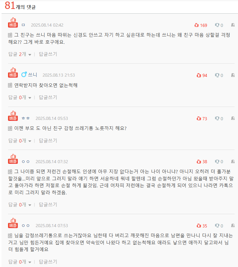 저번에는 주말 아침부터 찾아와서는 울더라고요.. 저도 제 생활이 있는데 솔직히 너무 피곤했어요