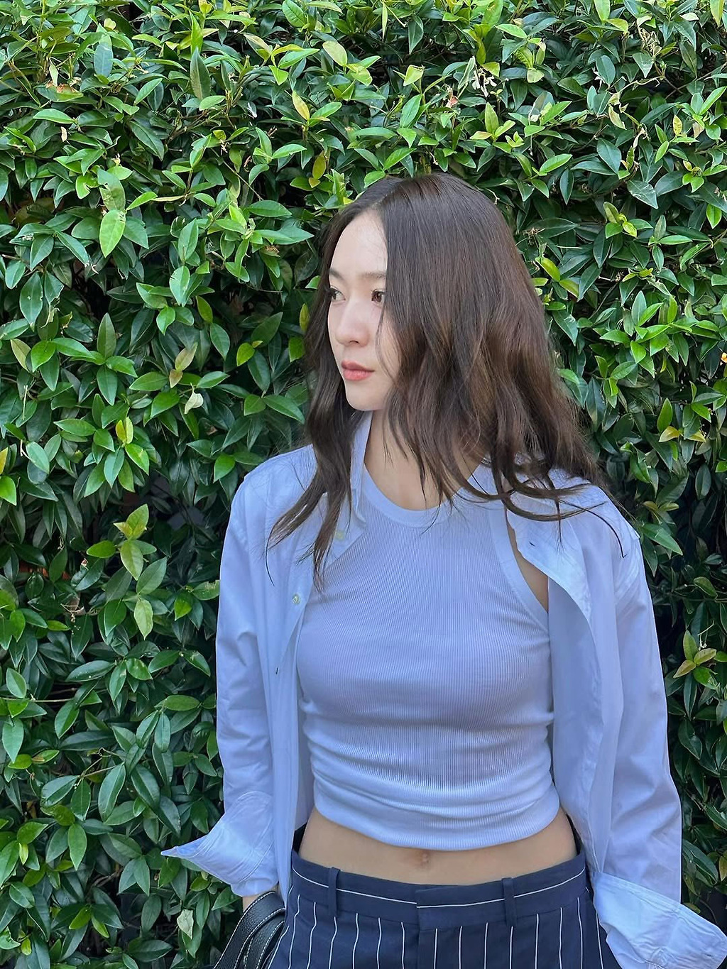 긴 생머리에.. 청순 시크... 퍼렁색 잘 어울리는거 까지 여전하다 미모 ㅠㅠ