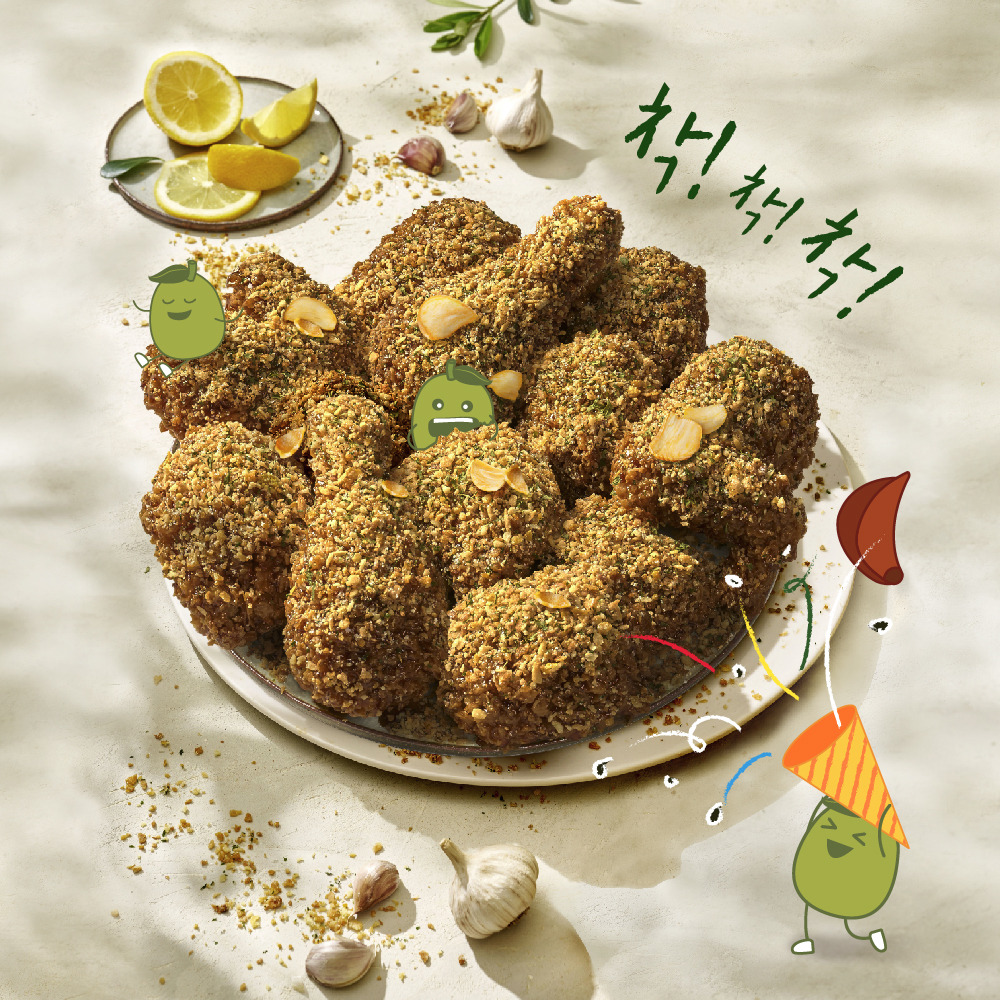 (레몬보이500ml 제공) 겉은 바삭하고 속은 육즙 가득한 부드러움이 매력인 시그니처 메뉴로 황금올리브치킨에 갈릭의 풍미를 더한 후라이드 치킨