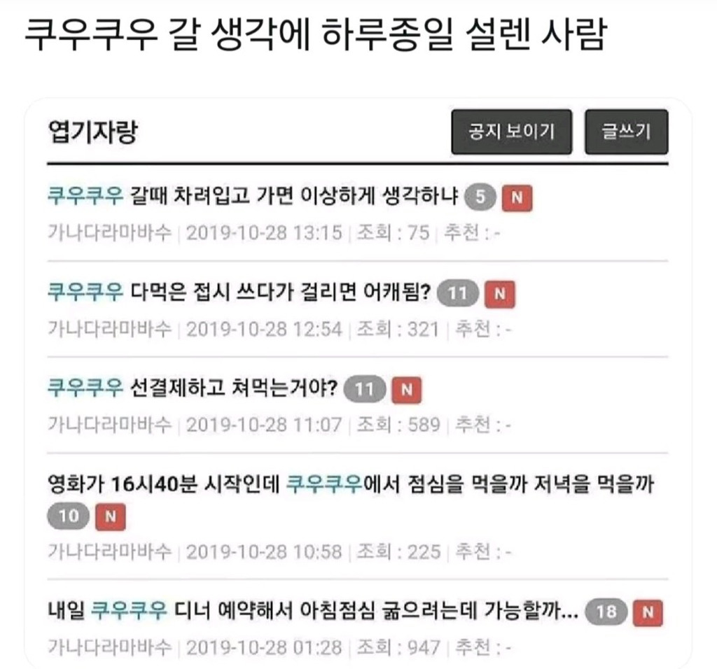 쿠우쿠우 아이스크림이 구슬아이스크림으로 바꼈다는 쩝쩝소식 전해드립니다야임마누엘 칸트점바점이라고 하니다들 쿠우쿠우 가기전에 전화해서구슬아이스크림 있냐고 물어보는거 잊지않기🤙참고로 마라탕도 있음딱 기다려쉐이 지금 만나러 갑니다~~추천수1비추천등록된 샷 리스트쿠우구슬아이스크림마라탕댓글 2댓글 정렬방식 선택추천순선택됨작성순Loading...Loading...댓글 쓰기프로필만 있으면 누구나 댓글 작성이 가능합니다.Loading...Loading...Loading...Loading...Loading...
