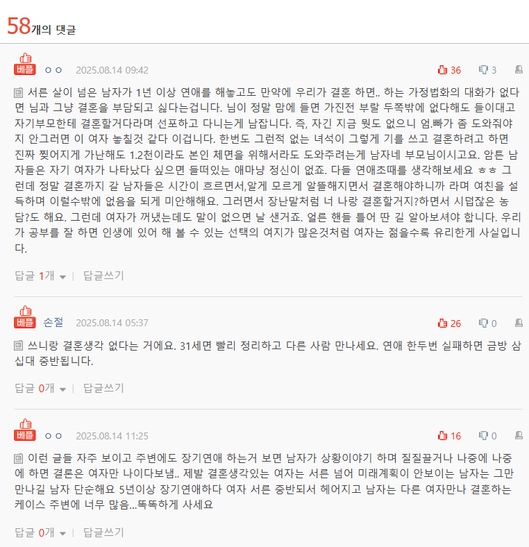 아.. 앞에 제 나이를 안적었네요 저는 31세