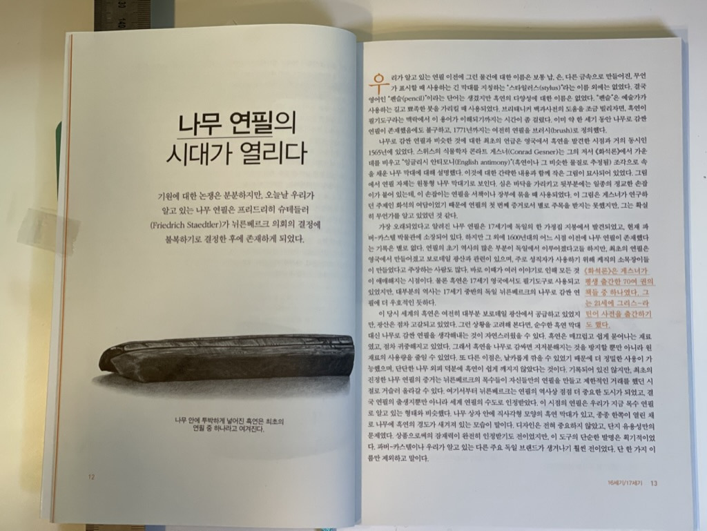 연필이야기덴디연필이야기나무 연필의 역사연필은 어떻게 만들어지는가블랙윙의 부활까지 연필의 역사와 연필이 어떻게 발전해왔는지 16세기에서 21세기까지의 여정을 다룹니다. 연필브랜드는 어떻게 탄생했는지 파버카스텔, 블랙윙같은 페룰이 붙어 유명 작가에게 사랑받는 연필 이야기를 재미있게 풀아갑니다. 전세계 연필들의 이야기를 숨쉴틈없이 풀어냅니다. 연필덕후에게 바이블 같은 책 추천수6비추천등록된 샷 리스트파버카스텔블랙윙연필바이블덕후댓글 3댓글 정렬방식 선택추천순선택됨작성순Loading...Loading...Loading...댓글 쓰기프로필만 있으면 누구나 댓글 작성이 가능합니다.Loading...Loading...Loading...Loading...Loading...