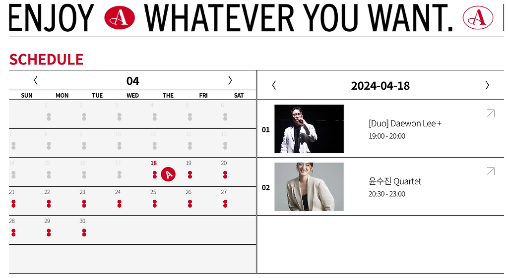 월별 공연스케줄은 홈페이지에서 확인가능함!