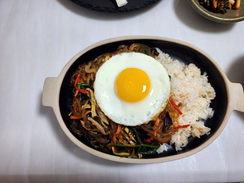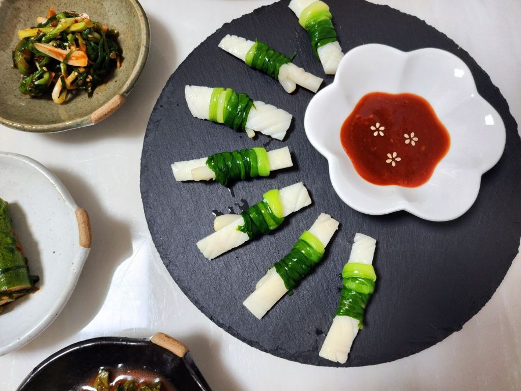 잡채밥 이랑 오징어 쪽파강회