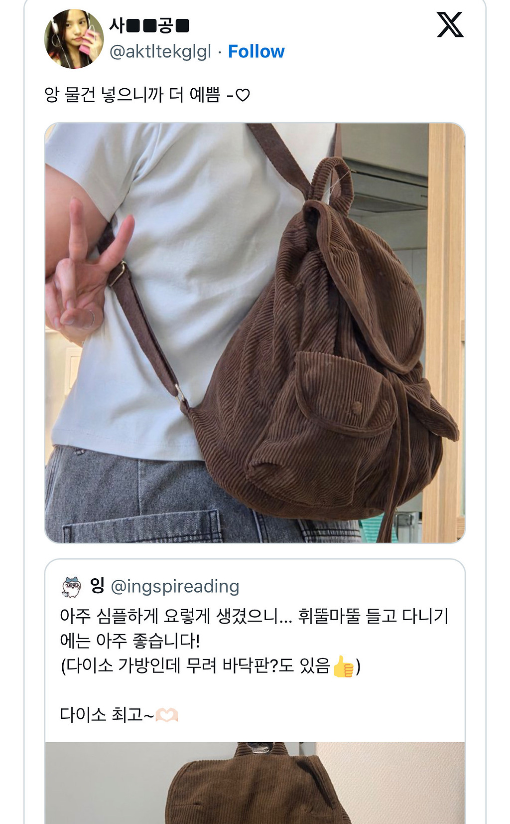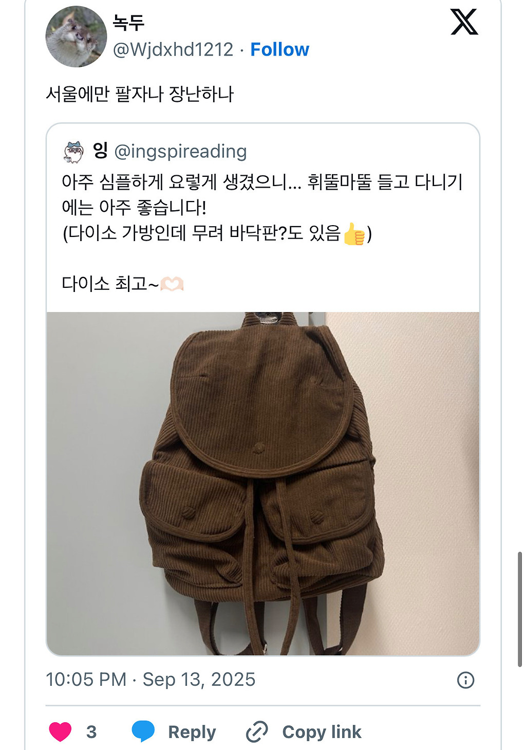 다이소 가방 봤어?태닝 키티 코듀로이 백팩 귀엽당 ㅊㅊ ㄷㅁㅌㄹ추천수10비추천등록된 샷 리스트가방백팩다이소댓글 4댓글 정렬방식 선택추천순선택됨작성순Loading...Loading...Loading...Loading...댓글 쓰기프로필만 있으면 누구나 댓글 작성이 가능합니다.Loading...Loading...Loading...Loading...Loading...