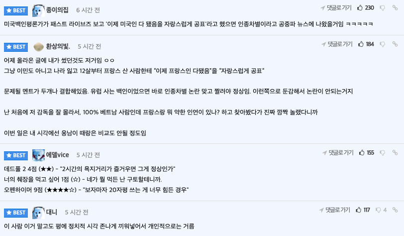 미국/유럽에서 백인 평론가가 저랬으면