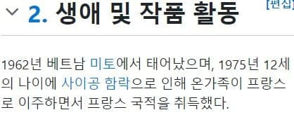 12살 때 프랑스로 이민 와서 프랑스 국적 취득하고