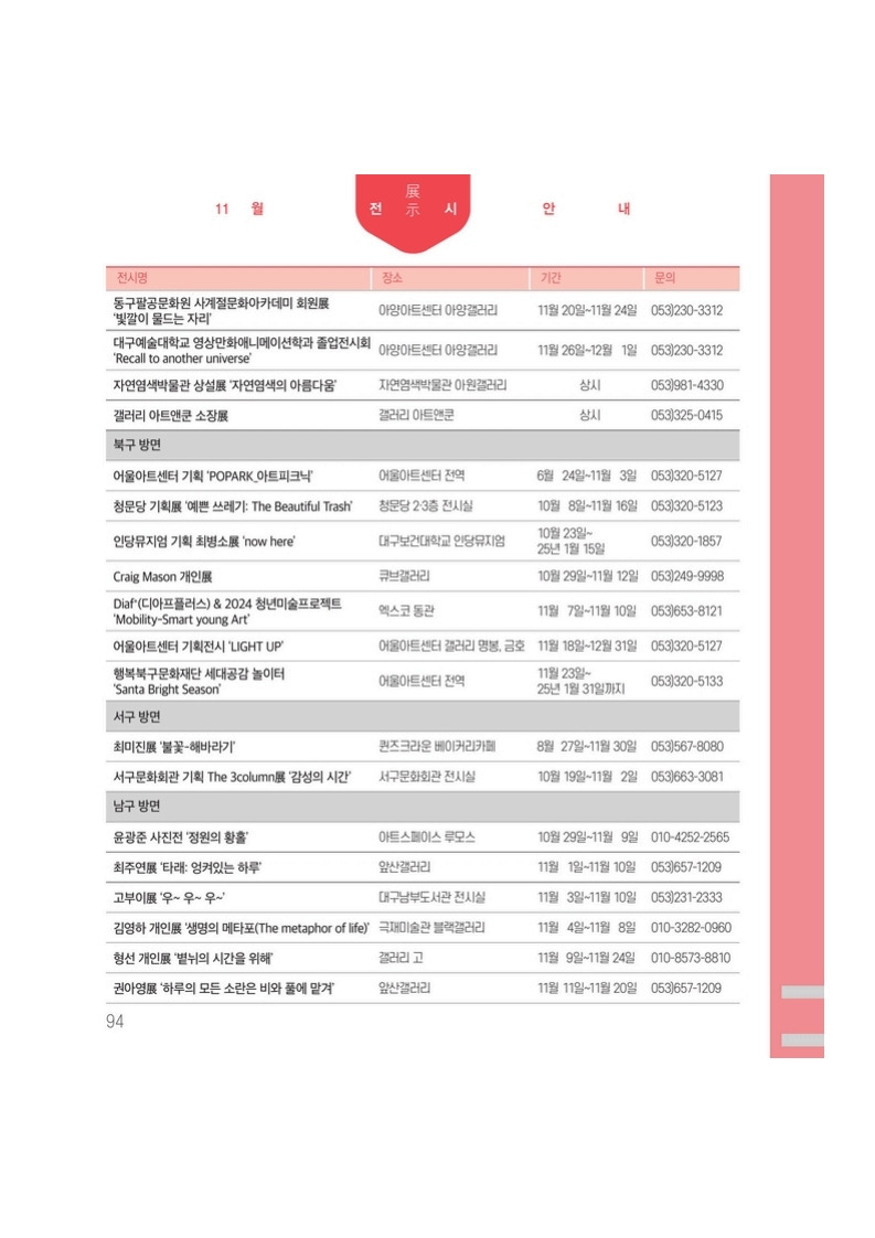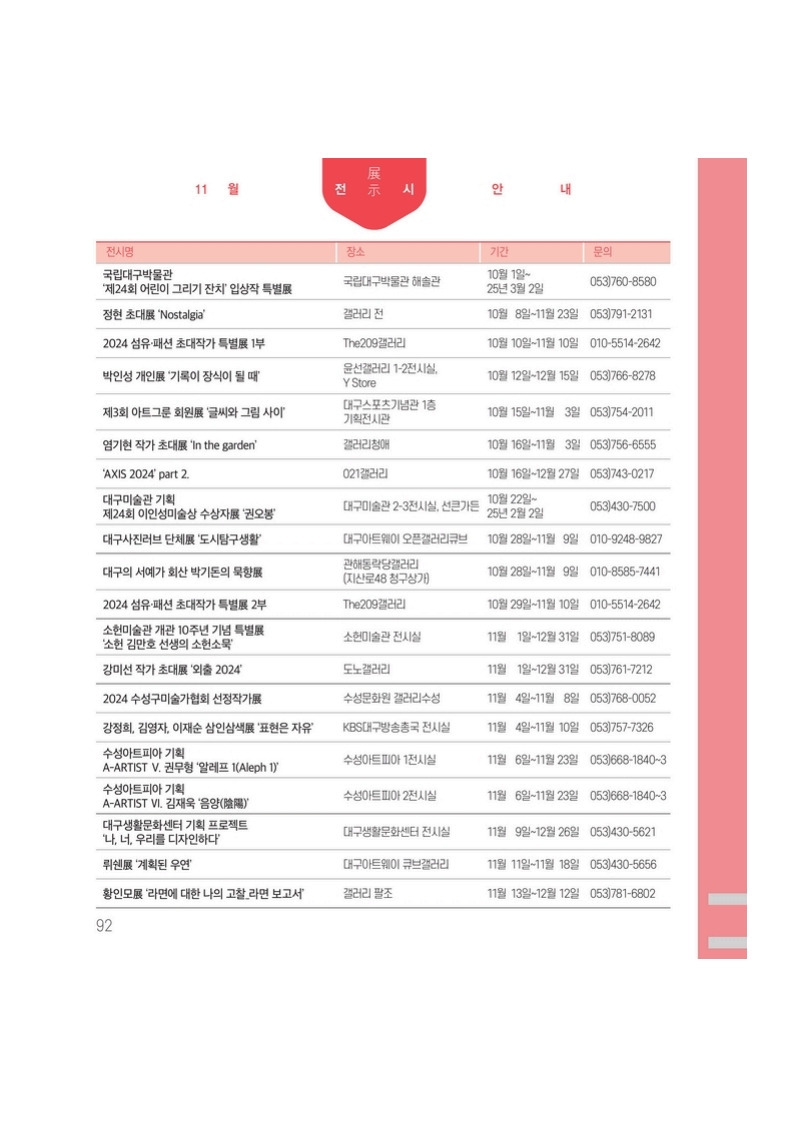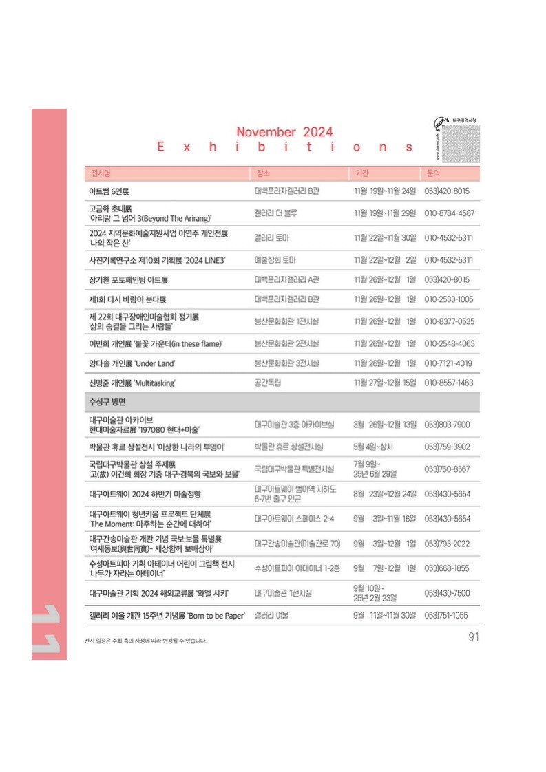 [24.11.] 대구 24년 11월 전시일정