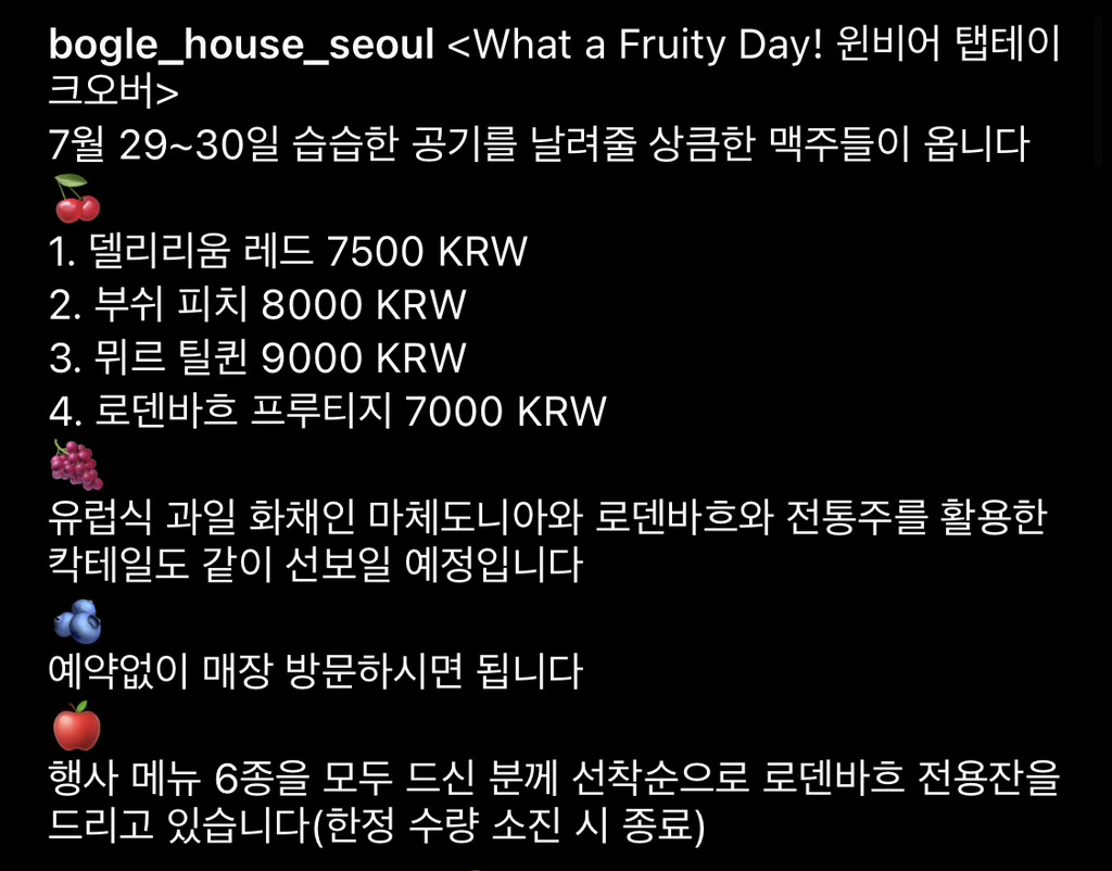 [이벤트] 종로_보글하우스뚜랭보글하우스 윈비어 과일사워 이벤트🍓🍒🍇가고싶다🥺추천수0비추천등록된 샷 리스트사워하우스비어종로과일댓글 0댓글 정렬방식 선택추천순선택됨작성순댓글 쓰기프로필만 있으면 누구나 댓글 작성이 가능합니다.Loading...Loading...Loading...Loading...Loading...