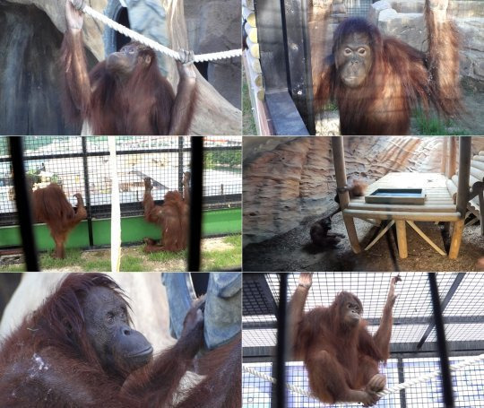 영장류에게 꼭 필요한 등반 구조물도 충분히 마련되어 있고, 바닥에는 잔디와 흙이 깔려 있어 건강을 고려한 기본적인 복지 시설도 어느 정도 갖춰진 모습입니다