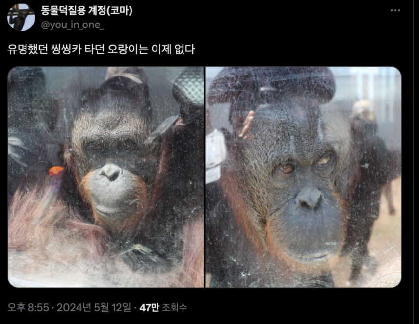 TV 인기스타였던 오랑우탄 오랑이 근황