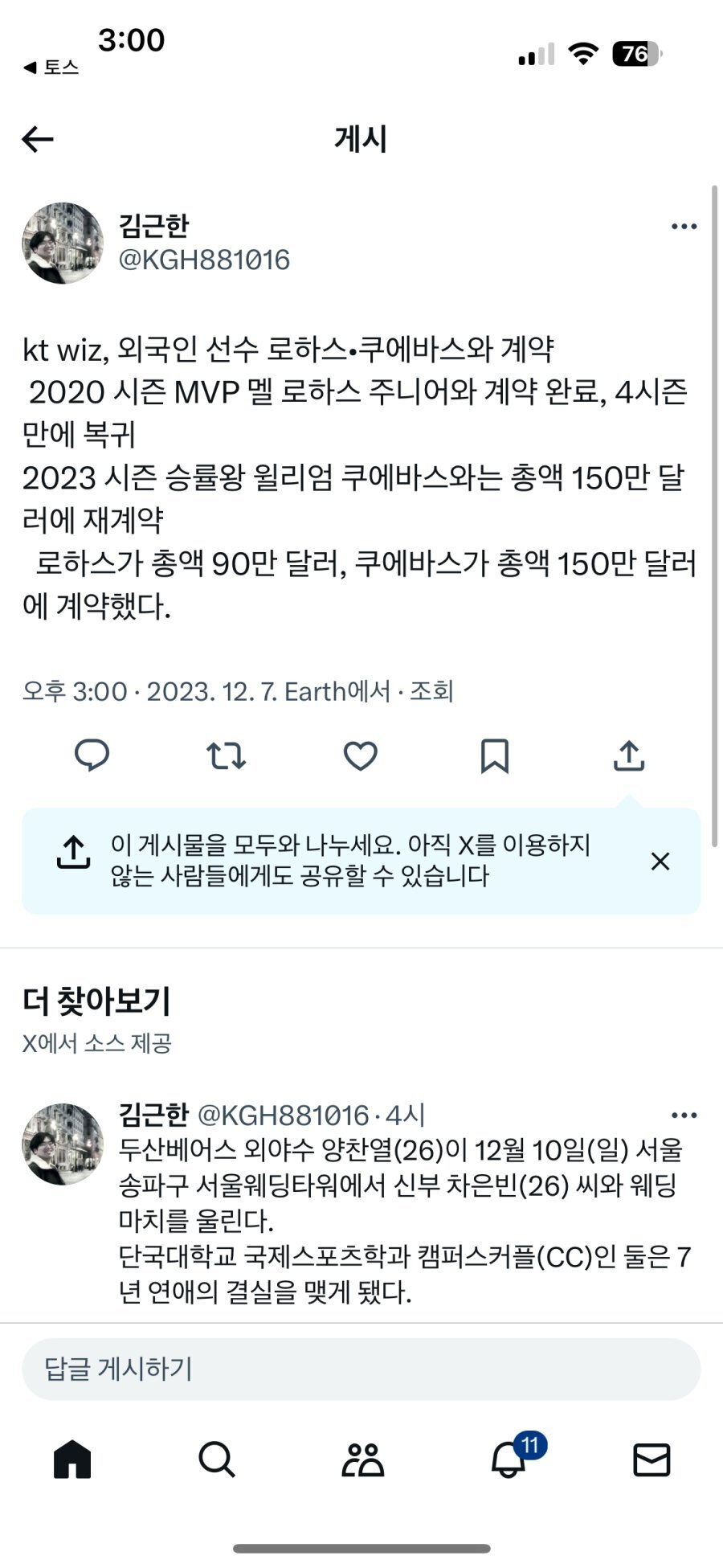 kt, '구단 1호 MVP' 로하스 복귀 추진… 쿠에바스와도 재계약 협상 중