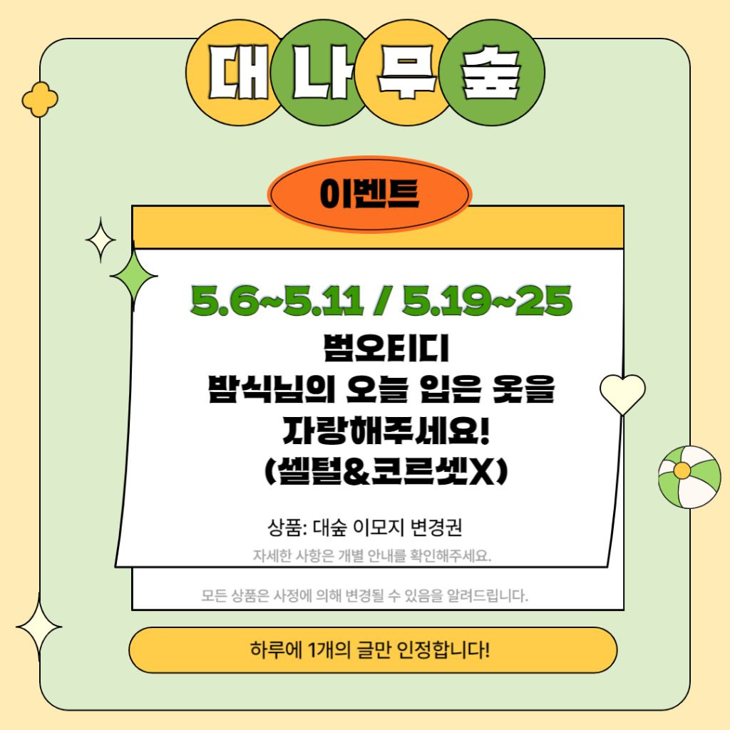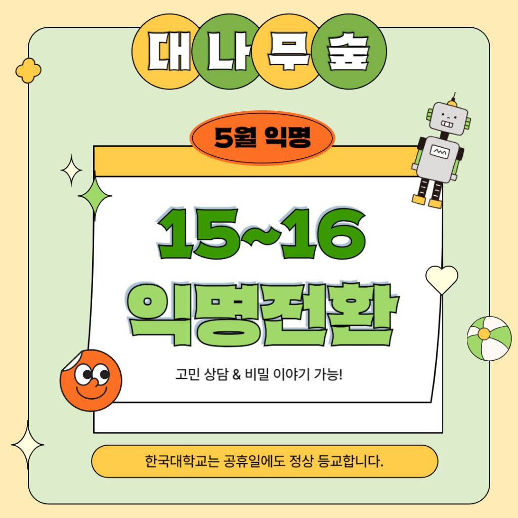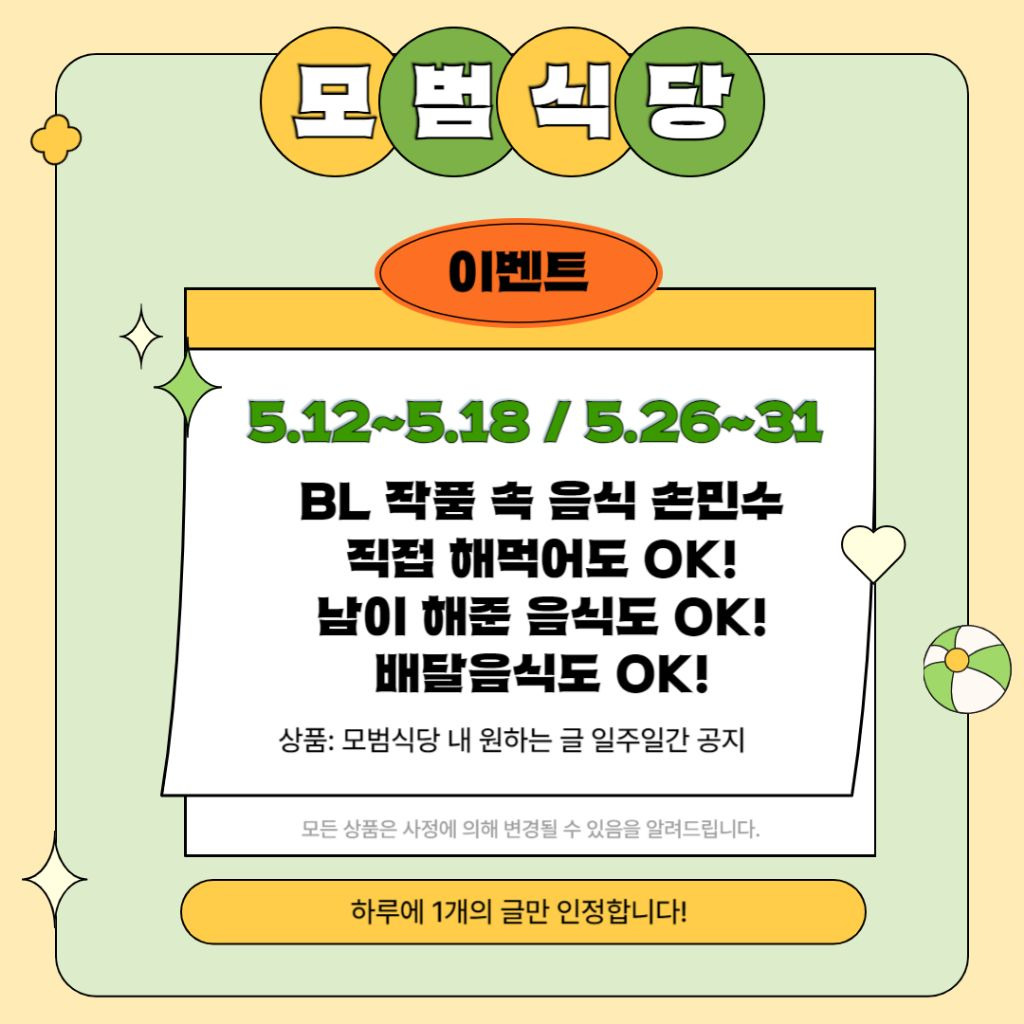 한국대학교 5월 익명&이벤트 안내no name안내글 바로가기https://m.cafe.daum.net/bumgae/D3Yu/191모든 이야기의 시작 - Daum 카페모든 이야기의 시작, Daum 카페m.cafe.daum.net한국대학교 바로가기https://m.cafe.daum.net/bumgae한국대학교 | HANGUK UNIVERSITY세상을 융합하는 지성의 힘 사랑과 다양성을 존중하며 소통하는 BL 공동체 대한민국 지성인들이 모여있는 한국대학교에 오신 것을 환영합니다. 대한민국 최초의 국립 BL 교육기관으로 깨끗한 대m.cafe.daum.net추천수5비추천댓글 0댓글 정렬방식 선택추천순선택됨작성순댓글 쓰기프로필만 있으면 누구나 댓글 작성이 가능합니다.Loading...Loading...Loading...Loading...Loading...