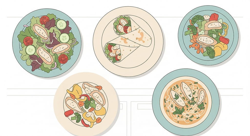 형태를 바꾸는 것도 질림을 줄이는 방법입니다. 잘게 다져서 동그랑땡처럼 굽거나, 채소와 함께 또띠아에 싸서 먹으면 전혀 다른 음식처럼 느껴질 수 있습니다. 국이나 스프에 넣어 부드럽게 익히는 방식도 부담이 적습니다. 닭가슴살 질리지 않게 먹는 레시피 모음은 씹는 방식과 식사 경험 자체를 바꾸는 데 의미가 있습니다.