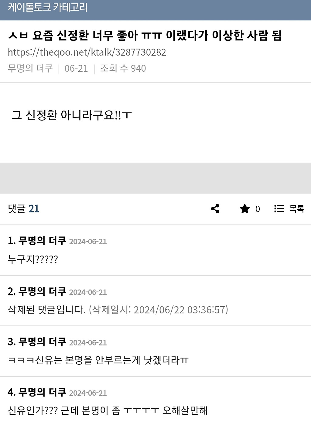 투어스 신유가 예명을 사용해야 했던 이유00001 투어스 리더 신유는팀에서 유일하게 예명을 사용하는 멤버인데그 이유는... 하지만 본인은 정환이로 불리는걸 좋아한다는듯추천수1비추천등록된 샷 리스트신유투어스예명댓글 0댓글 정렬방식 선택추천순선택됨작성순댓글 쓰기프로필만 있으면 누구나 댓글 작성이 가능합니다.Loading...Loading...Loading...Loading...Loading...