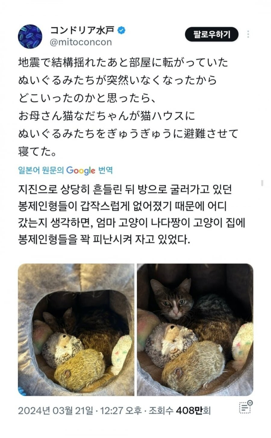 지진 이후 갑자기 사라진 인형들웃픽지진 이후 갑자기 사라진 인형들 추천수13비추천등록된 샷 리스트지진인형댓글 1댓글 정렬방식 선택추천순선택됨작성순Loading...댓글 쓰기프로필만 있으면 누구나 댓글 작성이 가능합니다.Loading...Loading...Loading...Loading...Loading...