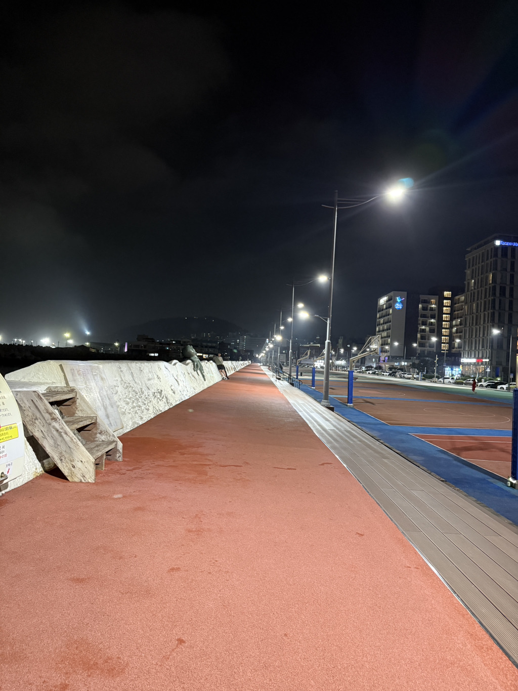 직선으로 1킬로 가량 달릴 수 있어서 트랙보다 훨씬 더 좋았다. 옆에는 바다이다.