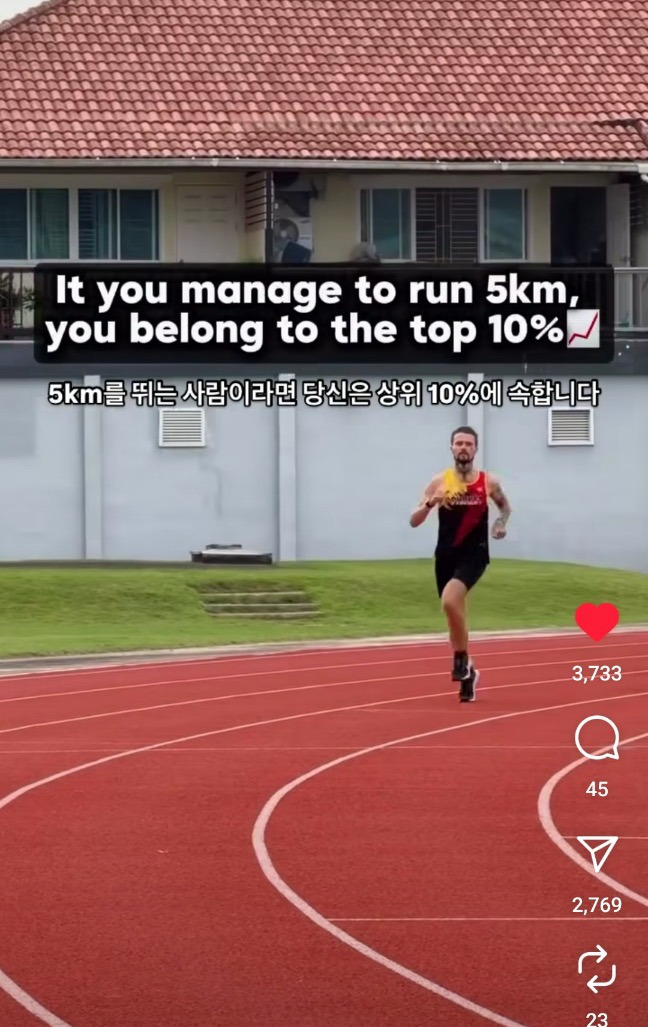 그 중 5k를 뛸 수 있다면 상위 10%에 속한다구요.