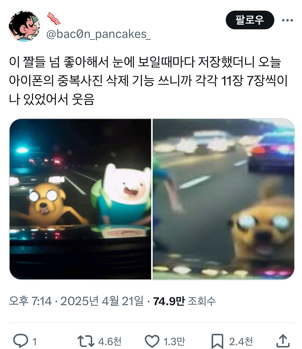 이 짤들 넘 좋아해서 눈에 보일때마다 저장했더니콩쥐땃쥐 ㅋㅋㅋㅋㅋㅋㅋㅋㅋㅋㅋㅋ 나도 저장해야지 출처 https://x.com/bac0n_pancakes_/status/1914261443534528657X의 🥓님(@bac0n_pancakes_)이 짤들 넘 좋아해서 눈에 보일때마다 저장했더니 오늘 아이폰의 중복사진 삭제 기능 쓰니까 각각 11장 7장씩이나 있었어서 웃음x.com 추천수0비추천등록된 샷 리스트짤저장눈댓글 0댓글 정렬방식 선택추천순선택됨작성순댓글 쓰기프로필만 있으면 누구나 댓글 작성이 가능합니다.Loading...Loading...Loading...Loading...Loading...