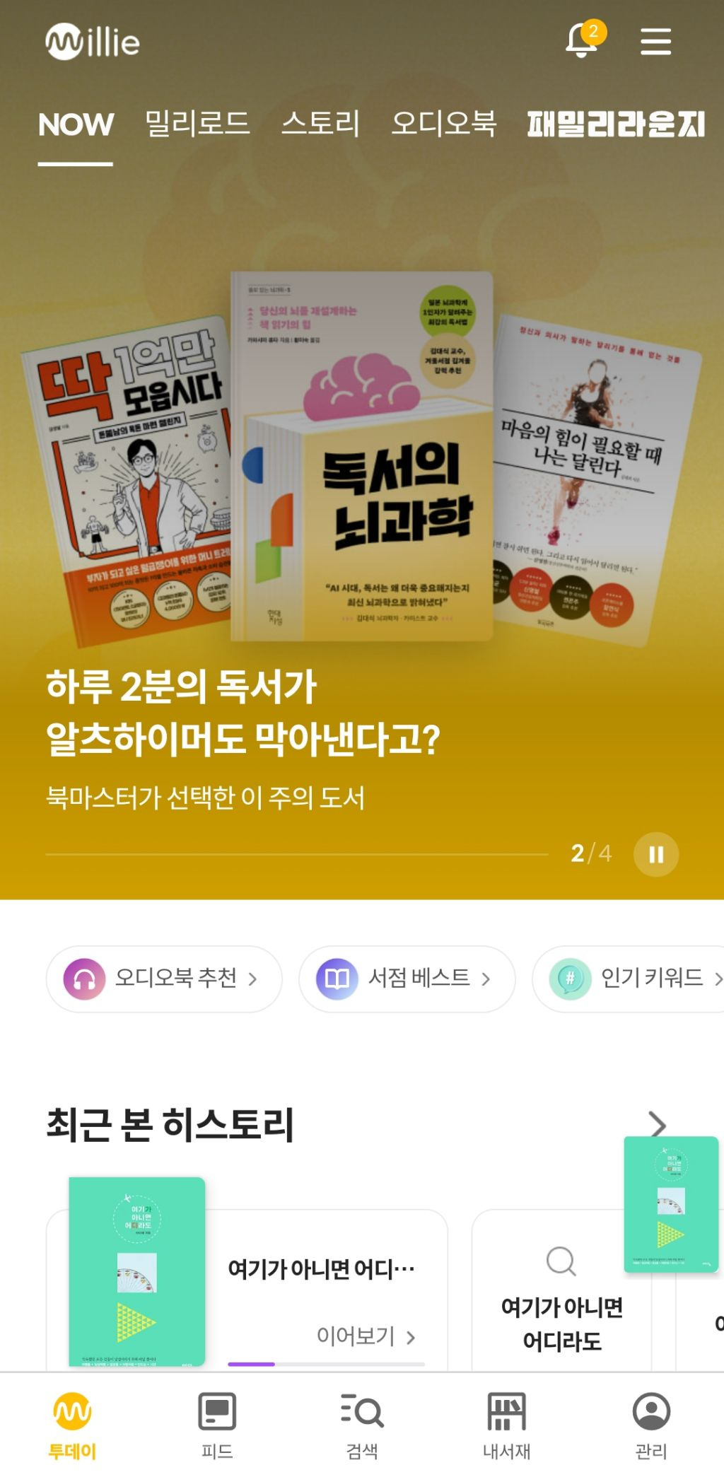 저는 원래 무조건 종이책이 근본이라 생각해서no nameE-BOOK 잘 이용 안하는데 어쩌다가 한번씩 밀리의 서재 구독하면 편하긴 하더라구요ㅋㅋ 잠자기전에도 불 끄고 볼수도 있구요추천수2비추천등록된 샷 리스트E-BOOK구독종이댓글 0댓글 정렬방식 선택추천순선택됨작성순댓글 쓰기프로필만 있으면 누구나 댓글 작성이 가능합니다.Loading...Loading...Loading...Loading...Loading...
