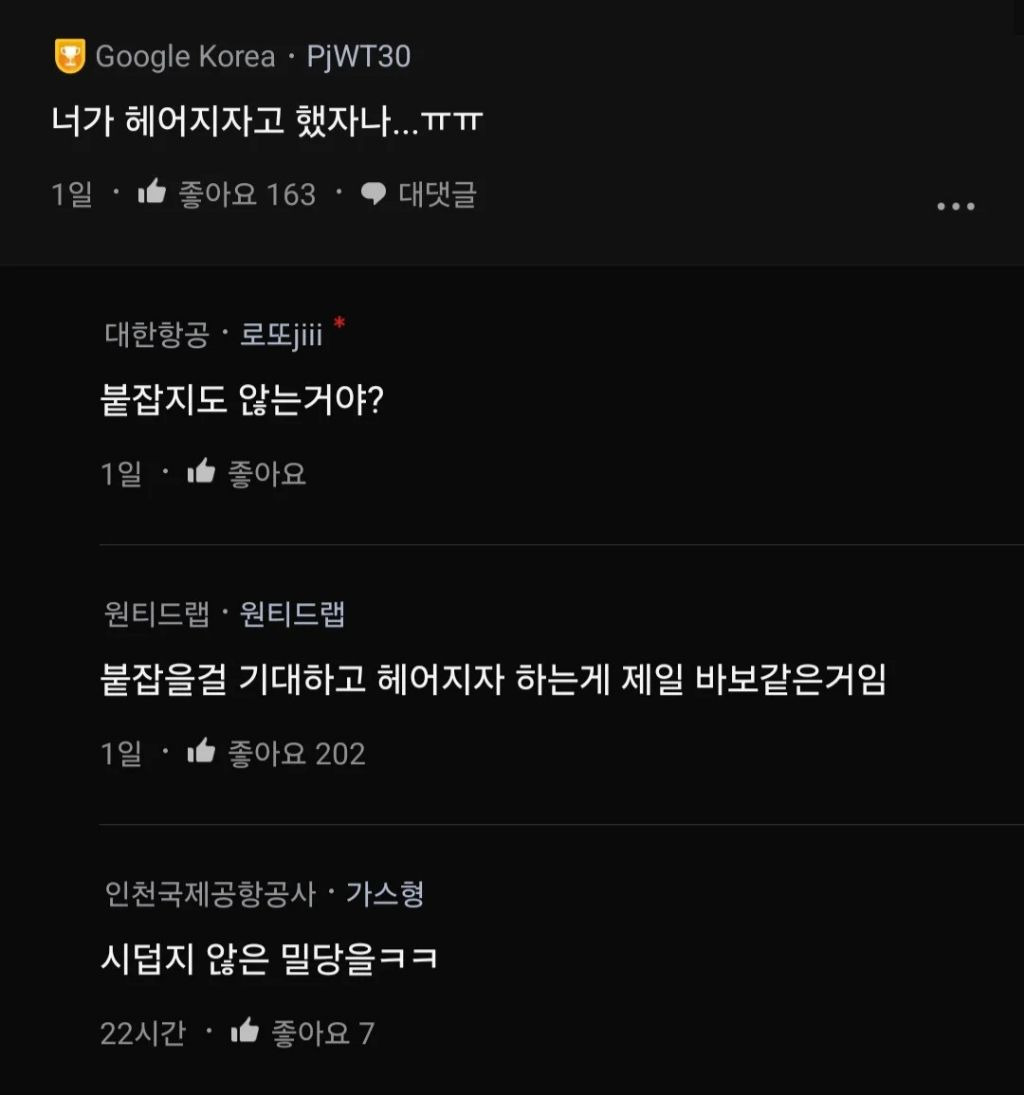 연애할 때 가장 싫은 부류 중 하나no name추천수3비추천등록된 샷 리스트연애부류댓글 1댓글 정렬방식 선택추천순선택됨작성순Loading...댓글 쓰기프로필만 있으면 누구나 댓글 작성이 가능합니다.Loading...Loading...Loading...Loading...Loading...
