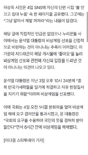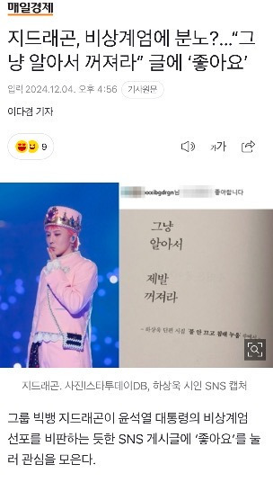 지드래곤, 비상계엄에 분노?...“그냥 알아서 꺼져라” 글에 ‘좋아요’no namehttps://m.entertain.naver.com/article/009/0005407943지드래곤, 비상계엄에 분노?...“그냥 알아서 꺼져라” 글에 ‘좋아요’ m.entertain.naver.com추천수2비추천등록된 샷 리스트비상계엄지드래곤분노댓글 0댓글 정렬방식 선택추천순선택됨작성순댓글 쓰기프로필만 있으면 누구나 댓글 작성이 가능합니다.Loading...Loading...Loading...Loading...Loading...