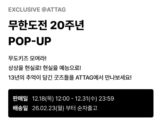 무한도전 팝업상품 예약판매 18일 낮 12시 오픈!
