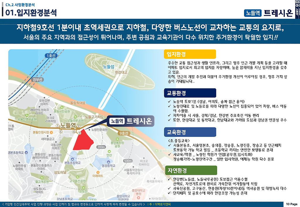 지하철 9호선 노들역 3번 출구와 1분 거리인 초역세권으로 한강을 정면으로 바라보면서 강남권을 원스톱으로 접근하는 탁월한 교통망과 주거환경을 지닌 노들역 트레시온 민간임대아파트를 살펴보는 시간입니다.
