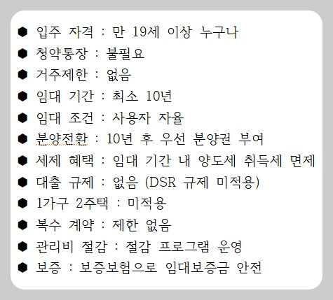 10년 임대 보장, 분양전환우선권 제공