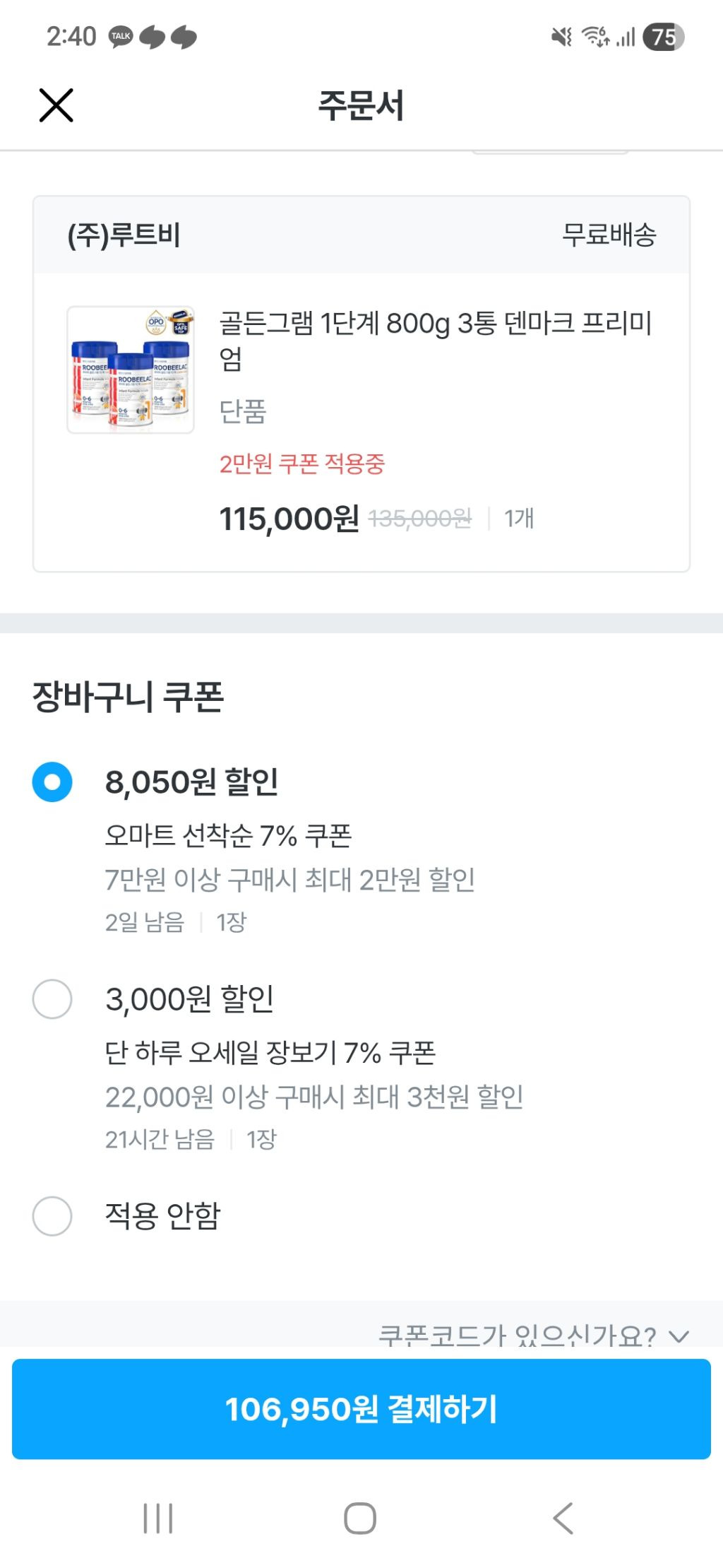 루비락 골든그램 1~3단계 800g×3캔 106,950원 핫딜핫딜알리미https://ozip.me/tOU7MYx?af모성의 감동소화 덴마크 프리미엄 루비락 골든그램 800g 3통135,000원, 무료배송. 리뷰 5.0점, 2,849개store.ohou.se추천수0비추천등록된 샷 리스트그램골든댓글 0댓글 정렬방식 선택추천순선택됨작성순댓글 쓰기프로필만 있으면 누구나 댓글 작성이 가능합니다.Loading...Loading...Loading...Loading...Loading...