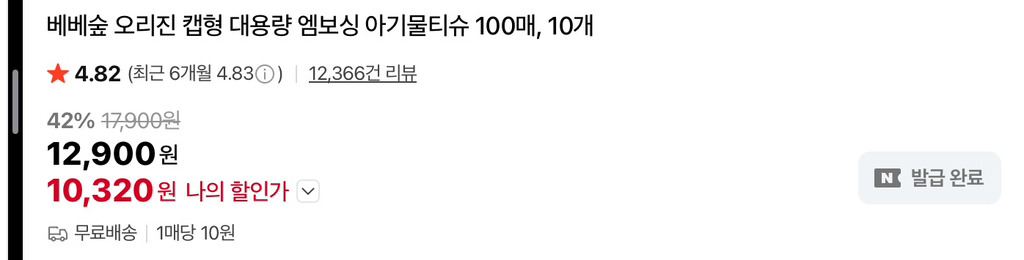 네이버 멤버십 할인 쿠폰 쓰면 10,320원에 구매 가능!
