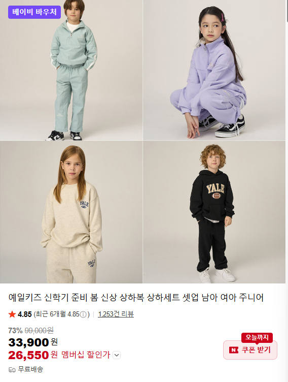 예일키즈 신학기 준비 봄세일 키즈, 주니어 상하복 26,550원 핫딜⭐ 할인율 73%