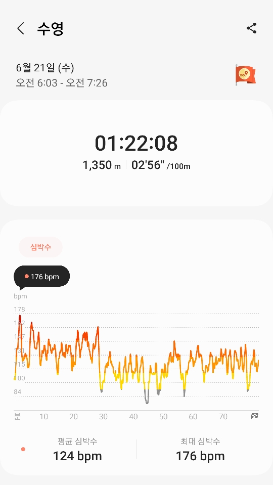 분명히 힘들었는데 심박수 낮은거 보소? 효율 꽝이네ㅡㅡ